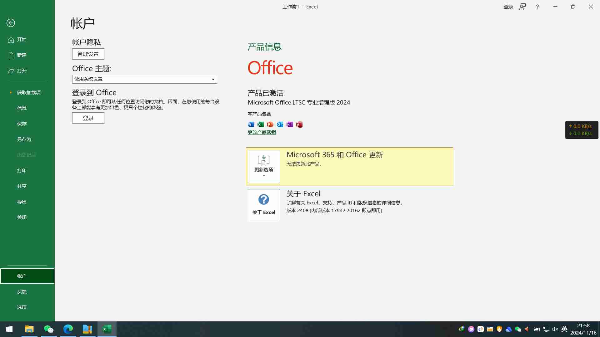 在账户中会提示 “Office专业增加版2024已激活”,无需手动激活