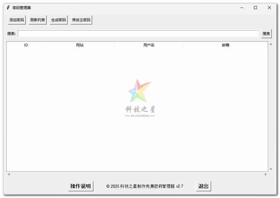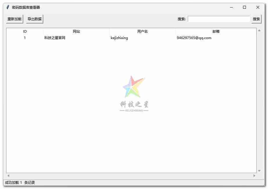 - 读取:表格视图展示所有密码条目,支持双击查看详情