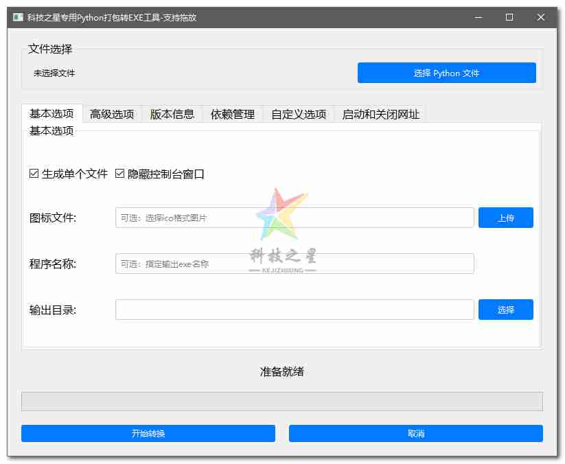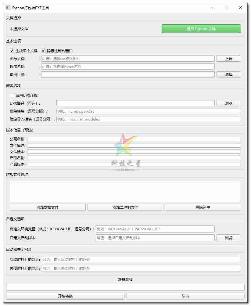 该Python打包单文件程序是一个使用PyQt6开发的图形化工具,主要功能是将Python脚本转换为可执行的EXE文件
