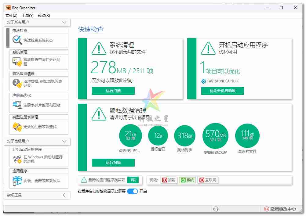 注册表优化 《Reg Organizer》8.44中文绿色版