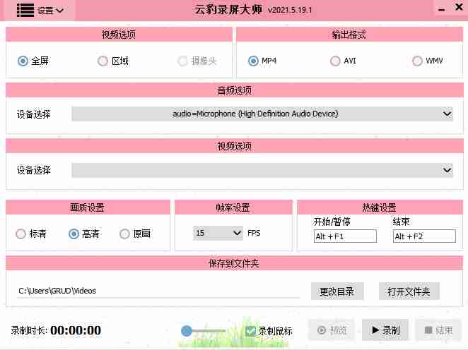 - 开始录制:点击红色按钮,支持热键控制启停。