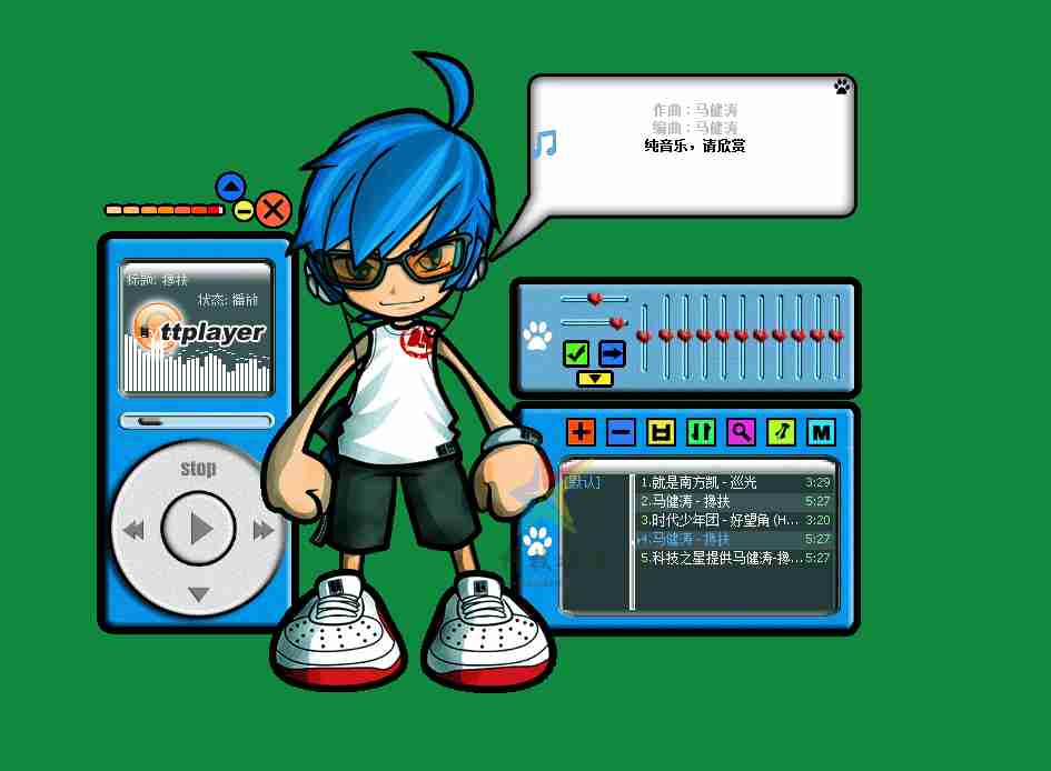 - 个性化功能丰富:主界面由主控窗口、均衡器、播放列表窗口组成,可自由显示/隐藏、改变窗口大小,还有迷你模式。提供上百款皮肤资源,用户可通过简单操作更换皮肤,实现界面的个性化。同时具有磁性窗口、半透明/淡入淡出窗口、窗口阴影、任务栏图标、自定义快捷键、信息滚动、菜单功能提示等多种个性化功能。