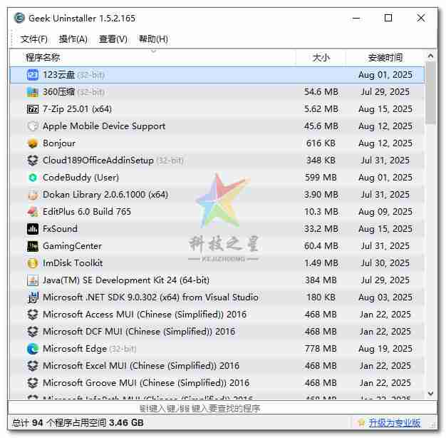 快速定位:支持按软件名称、安装日期、大小排序,内置搜索框实时过滤结果,秒速找到目标软件。