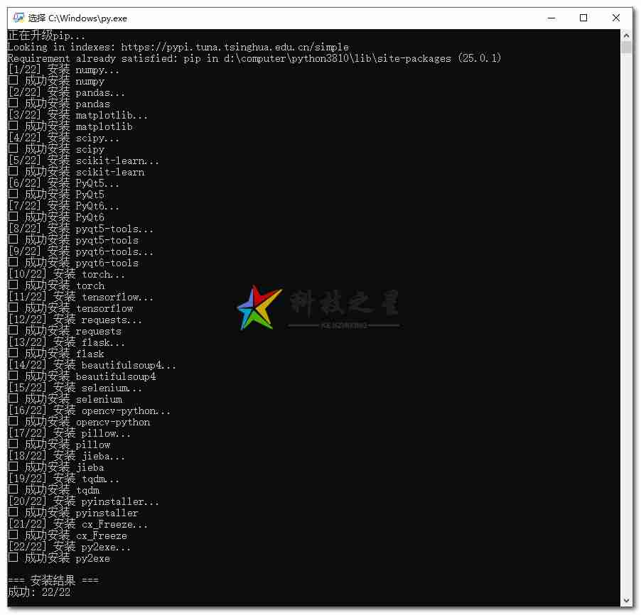 运行脚本:打开命令提示符,输入python python库一键安装脚本.py