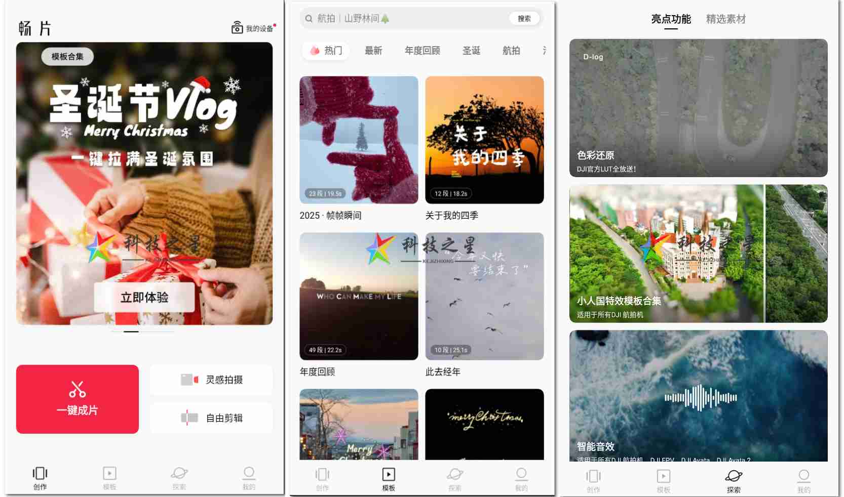 📁 丰富的创意模板:热门视频模板、VLOG、航拍、旅行、卡点视频模板、萌娃、生活、艺术、照片模板等不同风格视频模板,总有一款适合你。