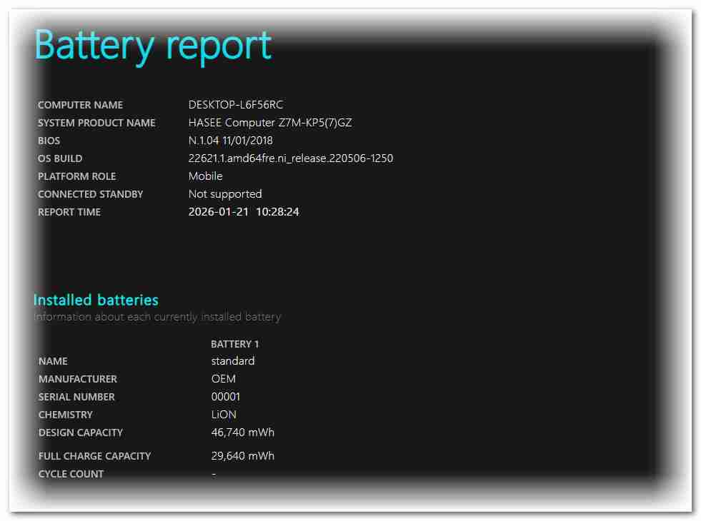 文章标题:笔记本电池健康度查询一键生成原生电池报告