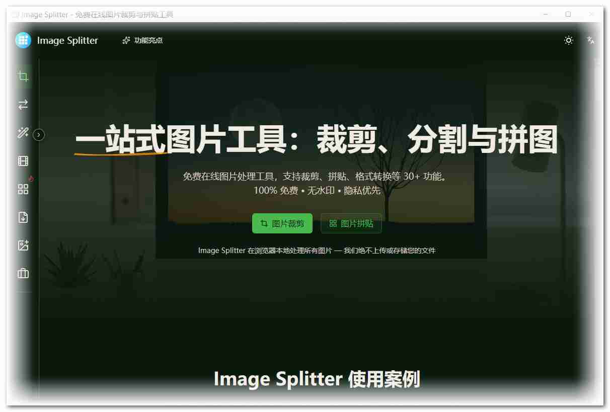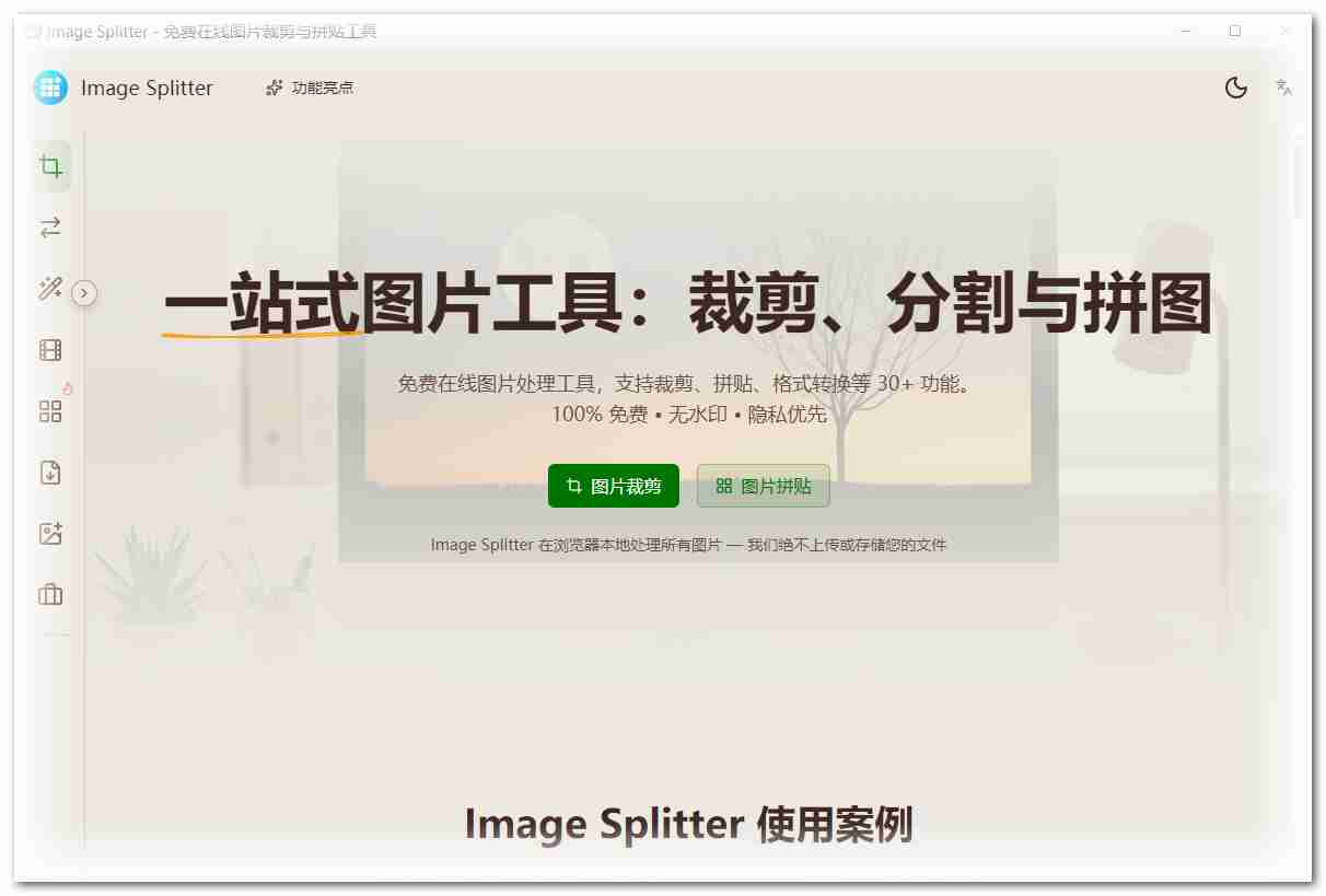 免费在线图片处理工具,支持裁剪、拼贴、格式转换等 30+ 功能。