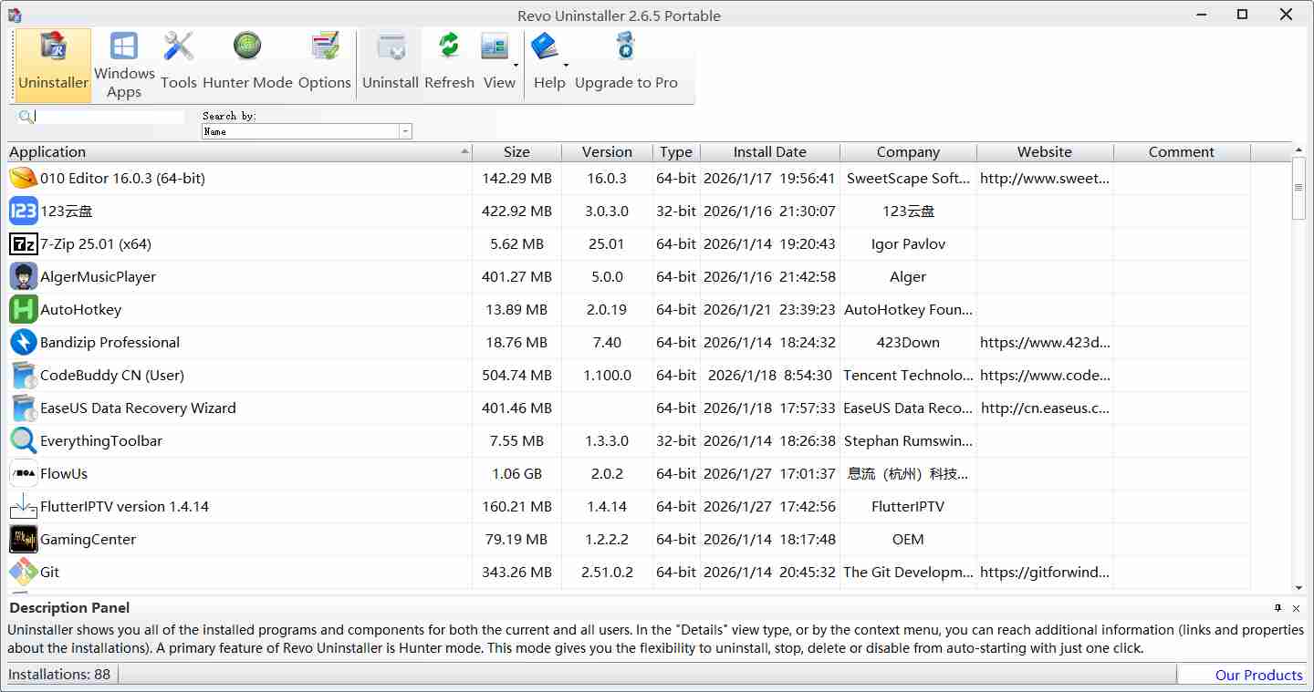 Revo Uninstaller 免费版是一款主打高效、彻底卸载的Windows系统工具,通过优化卸载算法,适配各类软件的卸载需求,操作简洁易懂,既能完成常规软件卸载,也能针对性清理顽固程序与残留文件,为用户提供远超系统自带卸载功能的优质体验,轻松解决软件卸载不彻底、顽固程序难清理等问题。