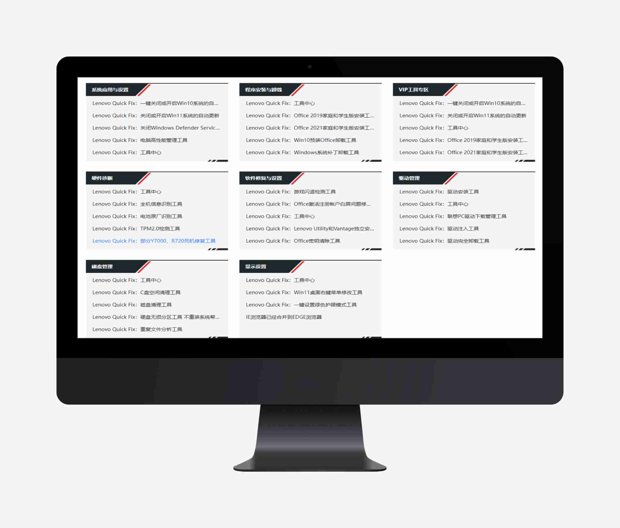 整合联想针对自家电脑硬件与系统适配的专属修复工具,覆盖各类高频问题,无需手动排查: