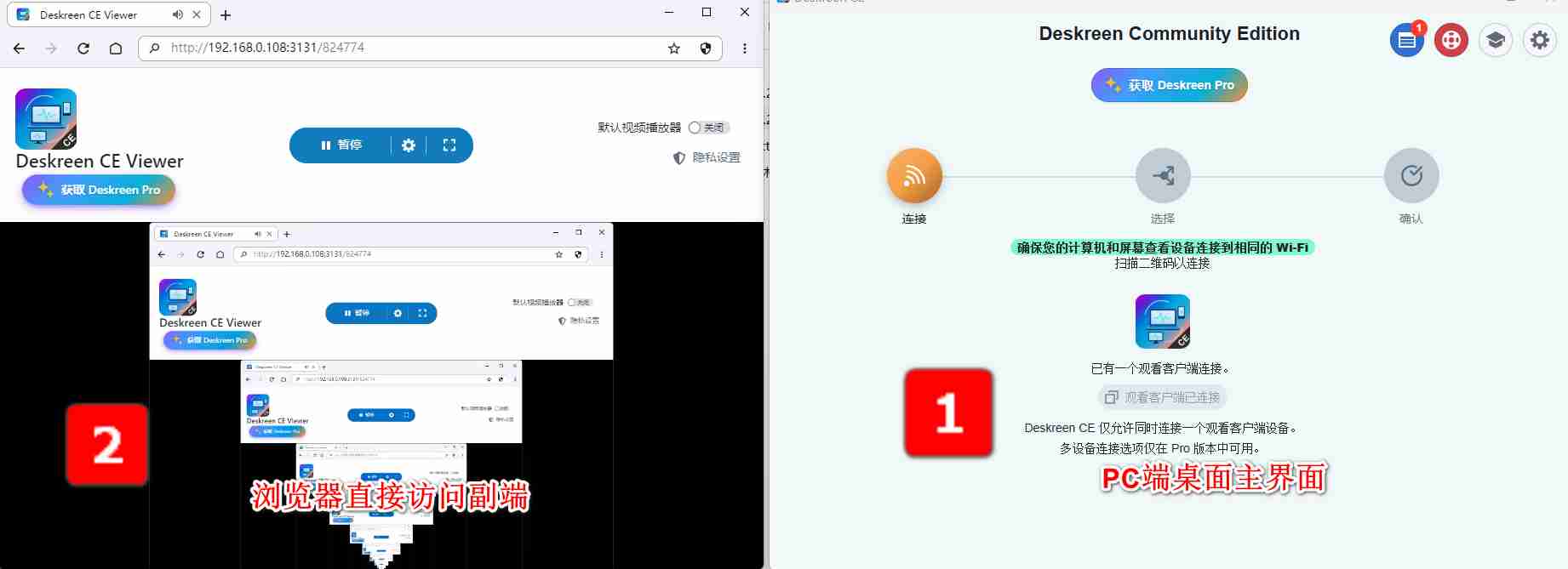 ./Deskreen\ CE-*.AppImage --ip 192.168.1.100(替换 192.168.1.100 为实际本地 IP,可通过 ipconfig/ifconfig 查询)