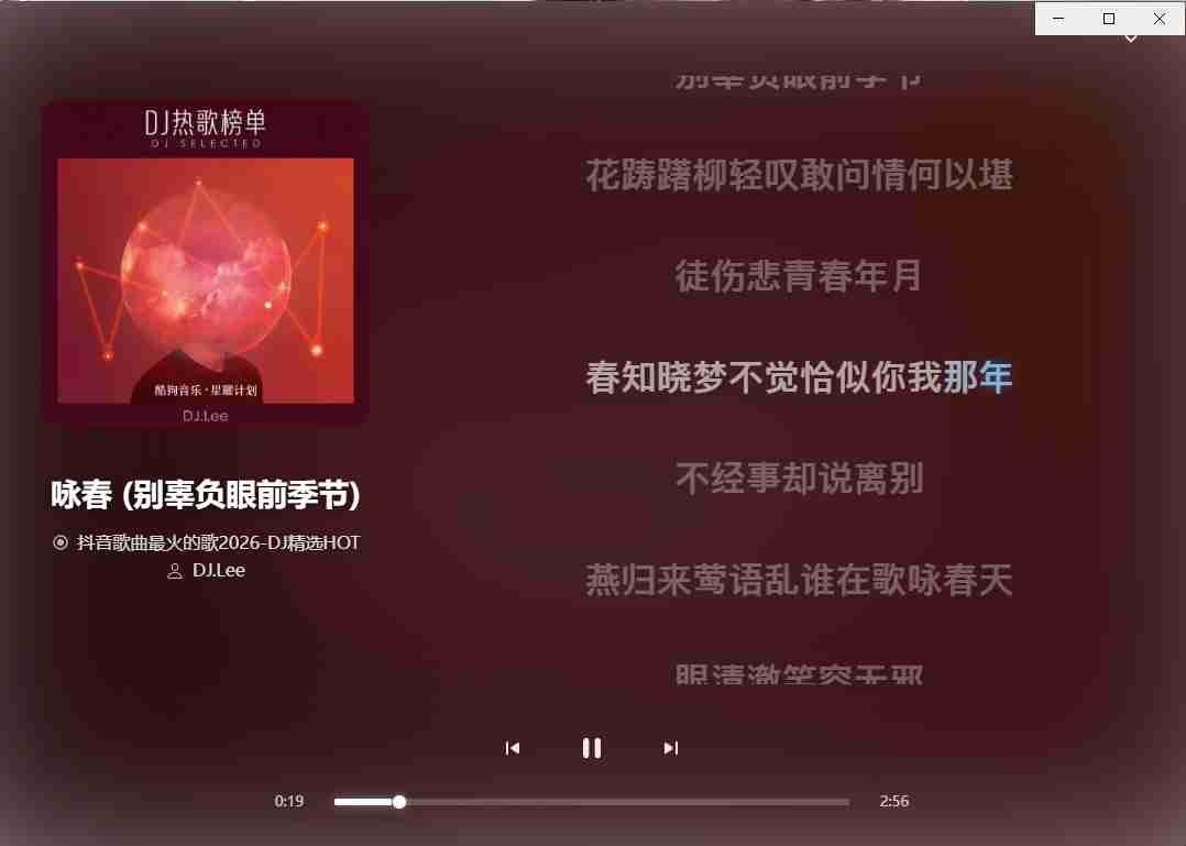 - 布局调整:侧边栏(歌单/收藏/最近播放)可折叠/展开,主界面仅保留核心播放控件。