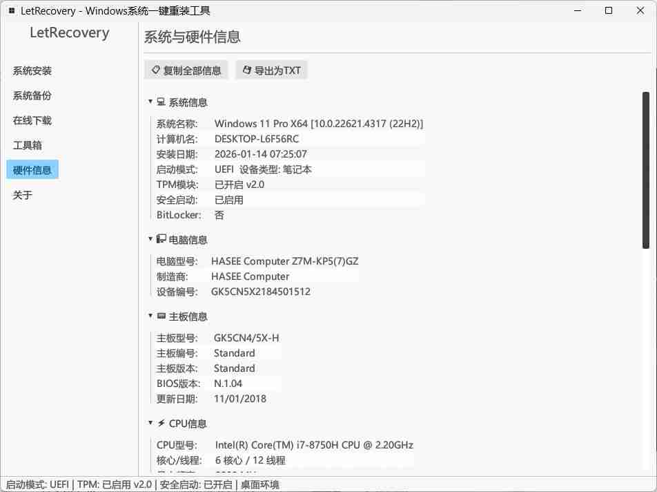 LetRecovery是一款基于Rust + egui技术栈精心打造的系统重装工具,以极致运行效率、零广告零捆绑的纯净体验为核心,搭配简洁直观的现代化操作界面,让电脑小白也能轻松完成系统重装,同时兼顾功能强大与安全可靠,是个人用户、运维人员的一站式系统重装解决方案。