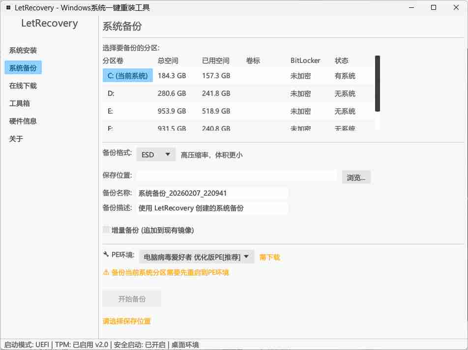 文件名称:LetRecovery(完整版【内置PE】).zip