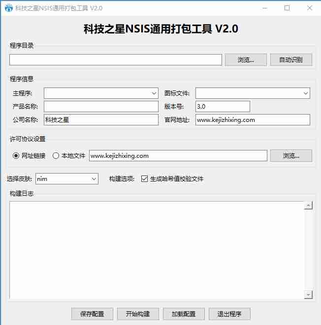 双击「科技之星NSIS打包工具.exe」,直接打开可视化操作界面,无需额外配置。