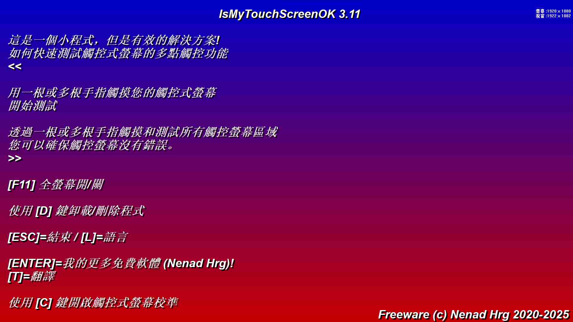 IsMyTouchScreenOK 是一款轻量、免费、便携的 Windows 专用触摸屏检测工具,用于快速排查触控坏点、无响应区域、漂移与多点触控异常