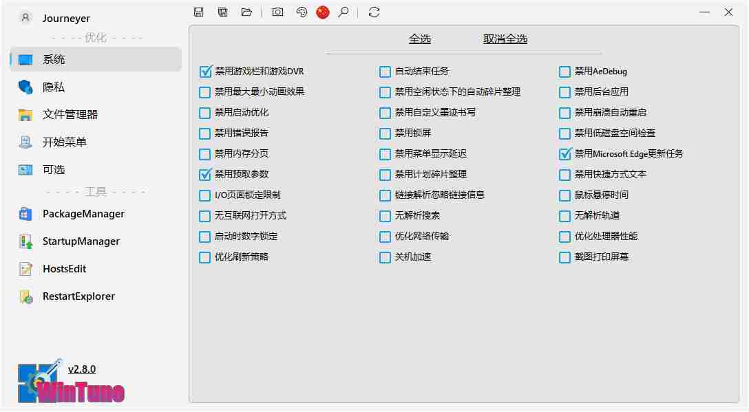 轻量级Windows 调整系统(WinTune)v2.8.0性能隐私无广告纯绿色便携版软件》