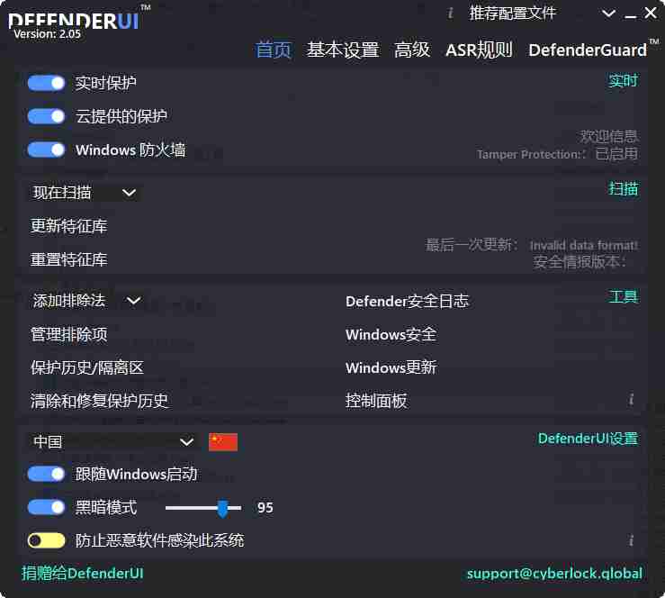 核心作用:简化 Defender 操作、解锁隐藏高级功能、一键切换安全配置,替代原生 Windows Security 繁琐复杂的深层设置入口。