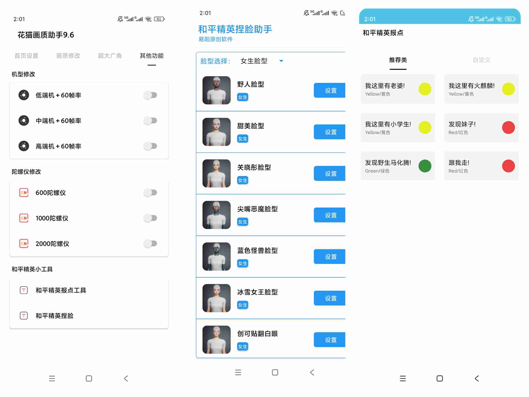 花猫画质助手支持一键设置超极限、超高清、HDR、高清、流畅、均衡等多种画质模式,除了预设选项外,还支持手动进行单独的配置,可以调整分辨率、阴影质量、纹理质量、抗锯齿等详细参数,自动检测设备性能,推荐最适合的画质设置,支持将游戏帧数解锁到120帧,更高的帧数可以显著提高射击移动目标时的命中率。