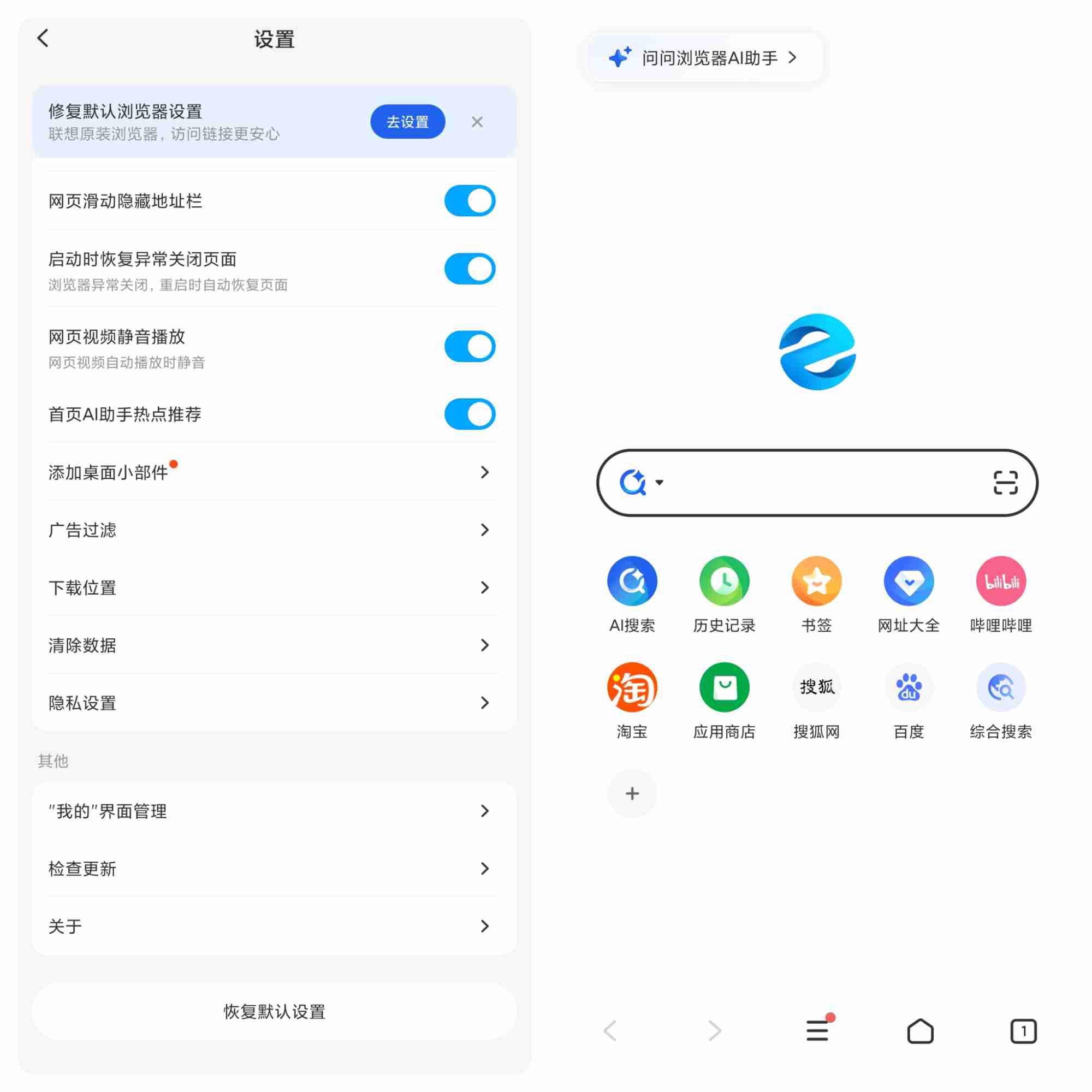 联想浏览器是一款功能全面、轻量化的移动端浏览器,主打简洁流畅与实用体验,兼顾日常浏览、隐私防护与内容娱乐,适配各类安卓设备。