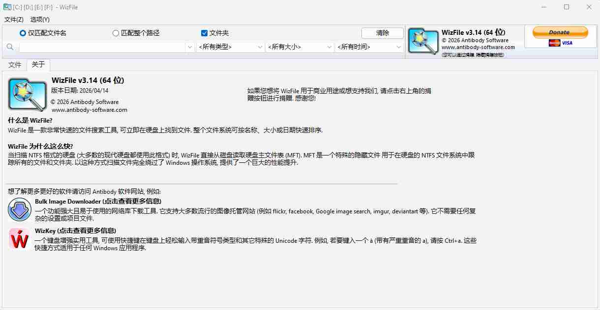 极速文件(WizFile) v3.14 搜索工具_实现毫秒级、实时、全盘文件搜索,个人免费、轻量无数据库》
