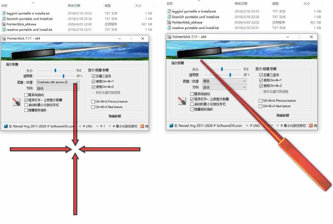 PointerStick 是一款 Windows 免费绿色便携 虚拟电子教鞭软件,专门用于课件演示、线上教学、会议分享、屏幕录制等场景,能够高亮鼠标光标位置,快速吸引观众视线。