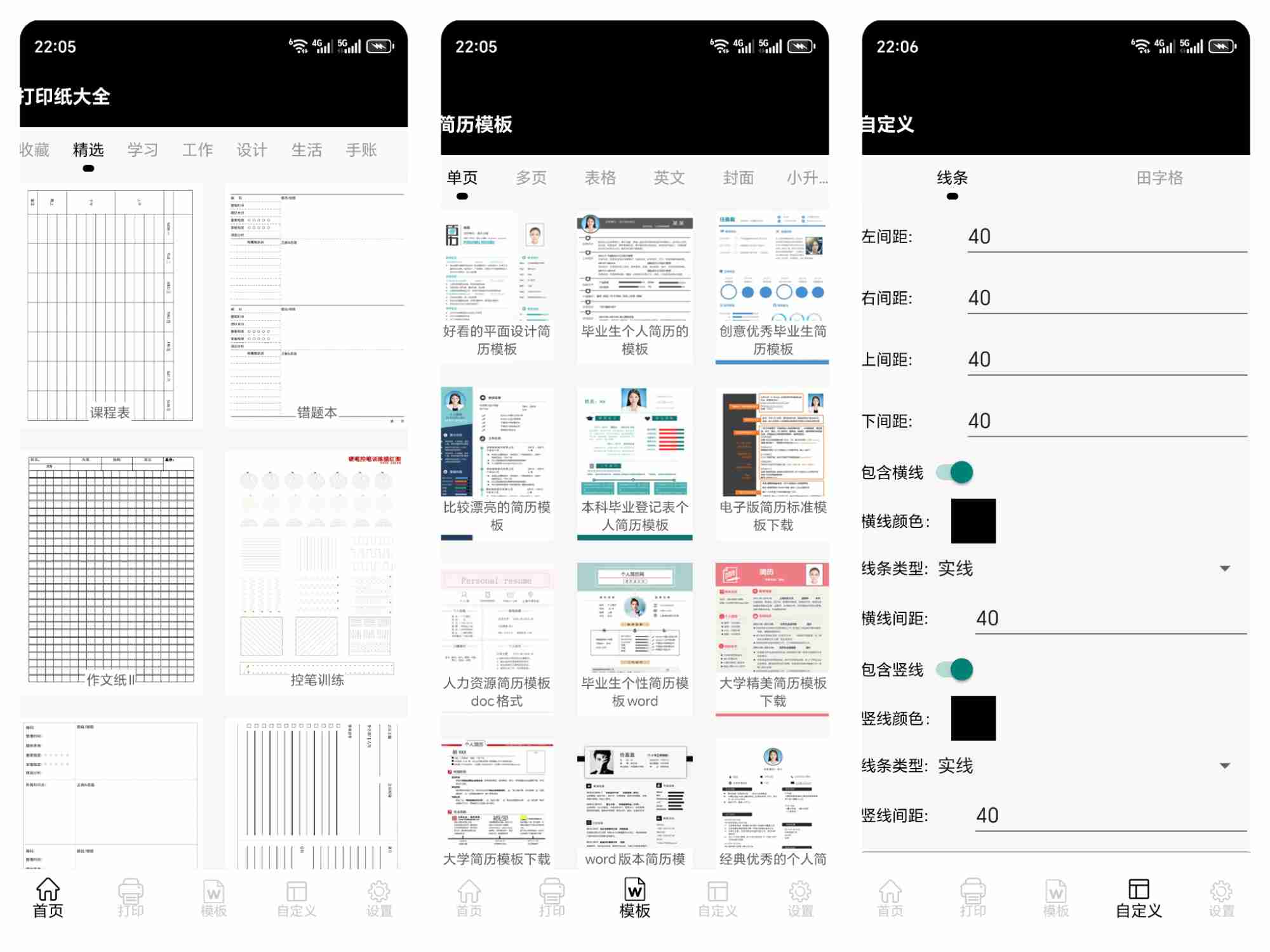 支持自定义线条、间距,可直接连接打印机A4打印,学习工作生活通用,无需额外找模板、买本子。