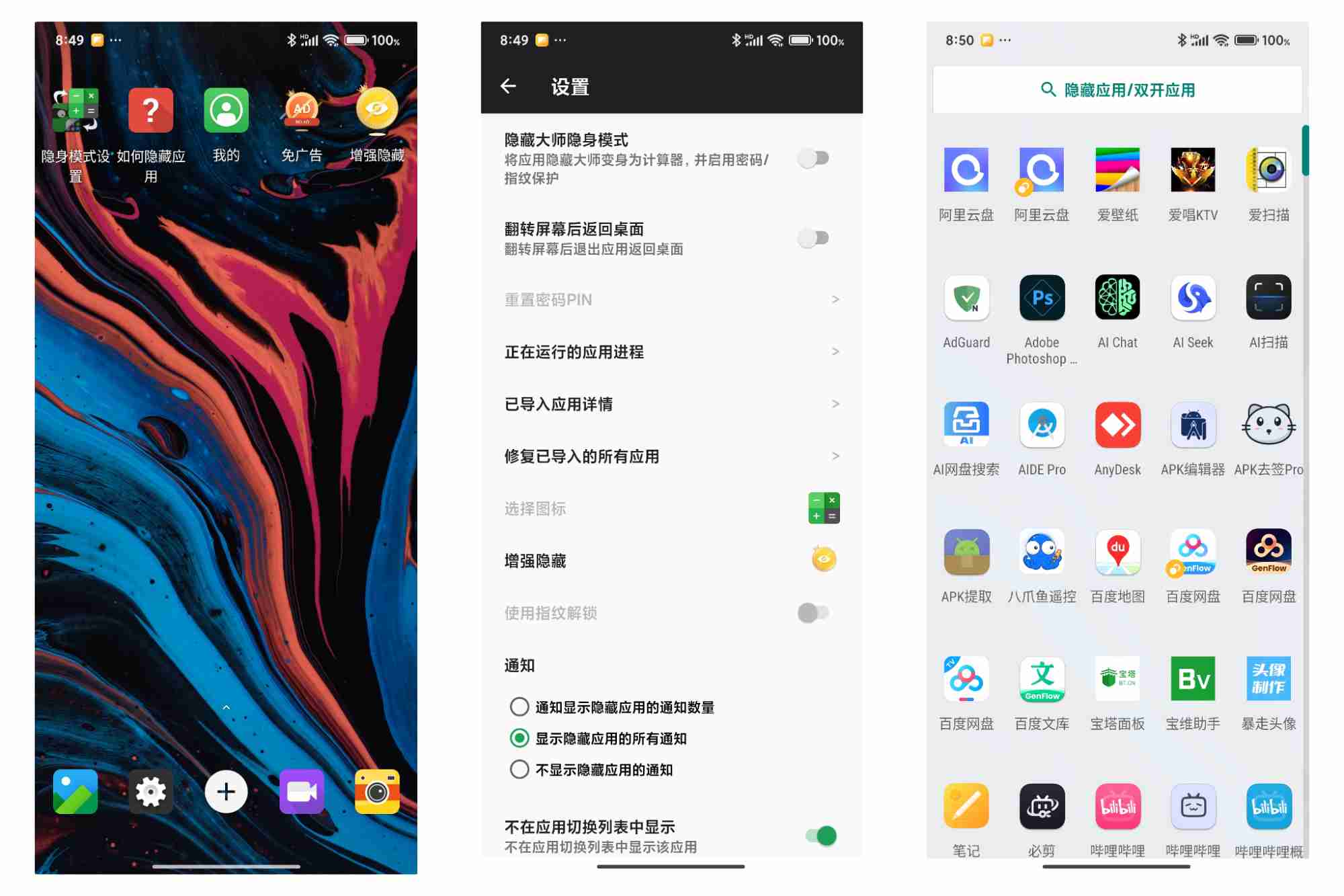 - 多重防护:支持通知隐藏、应用锁、密码保护,筑牢隐私防线