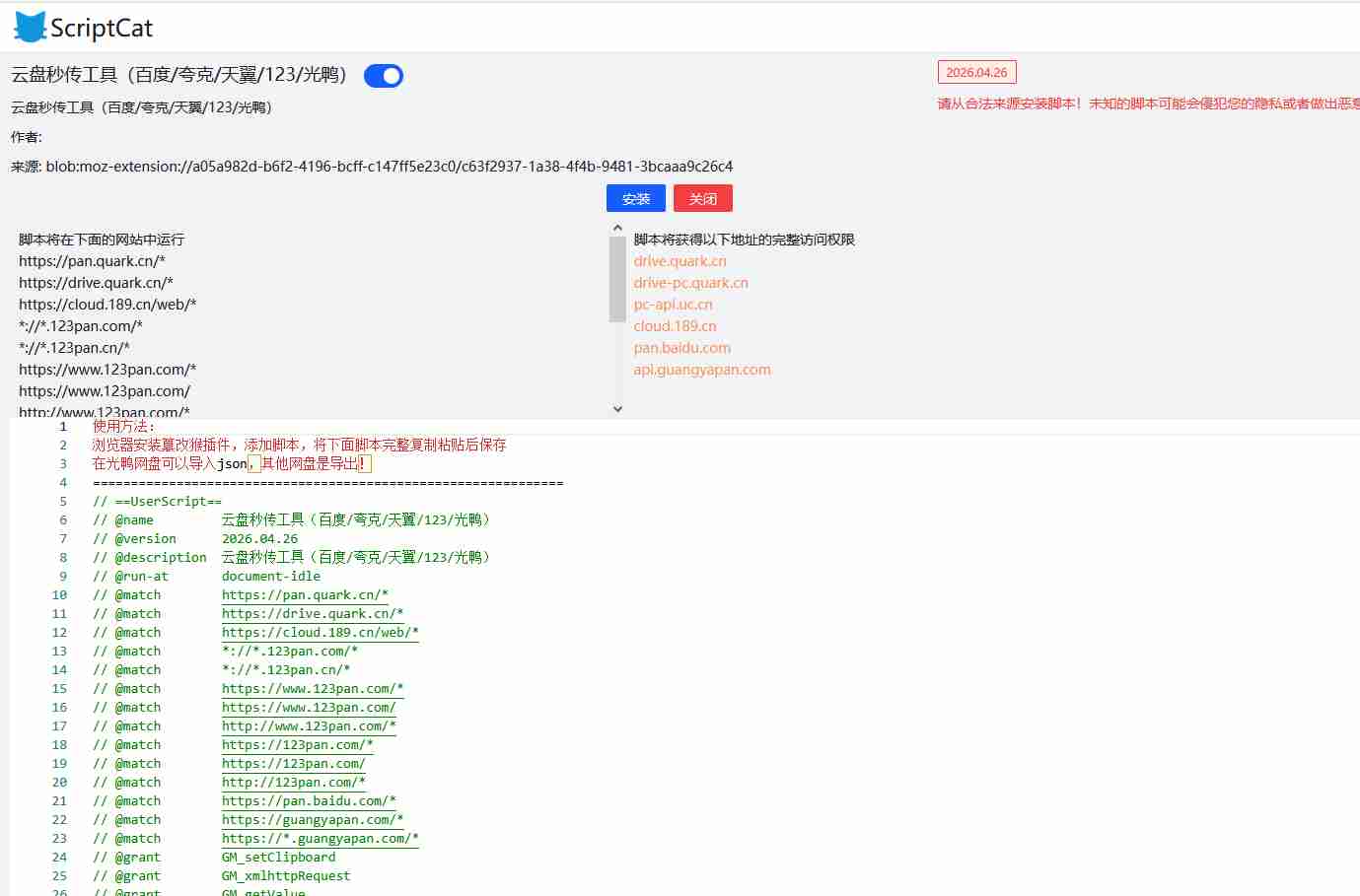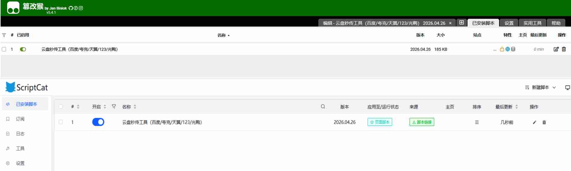 - 打开篡改猴等插件工具控制面板,选择「添加新脚本」,粘贴云盘秒传工具完整脚本代码,按下