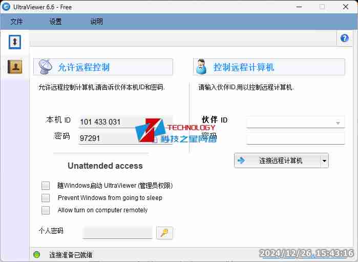 - 获取ID和密码:软件运行后会自动分配ID和密码给每台电脑.
