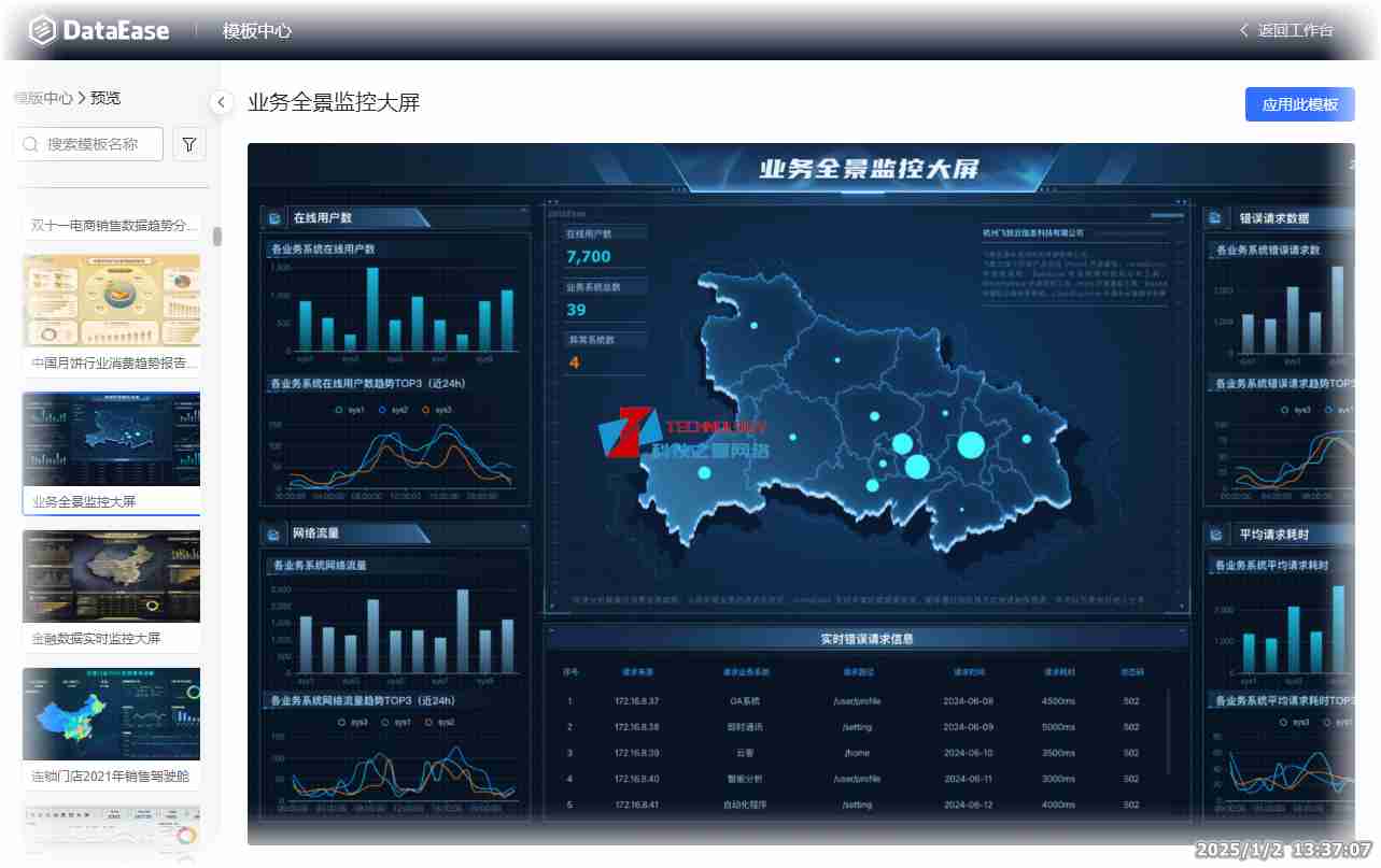 Dataease是一款开源的数据可视化分析工具,旨在帮助用户快速地连接数据源、处理数据,并创建直观、交互式的可视化报表和仪表盘,即使没有专业的数据分析技能,也能轻松探索和理解数据,做出数据驱动的决策。