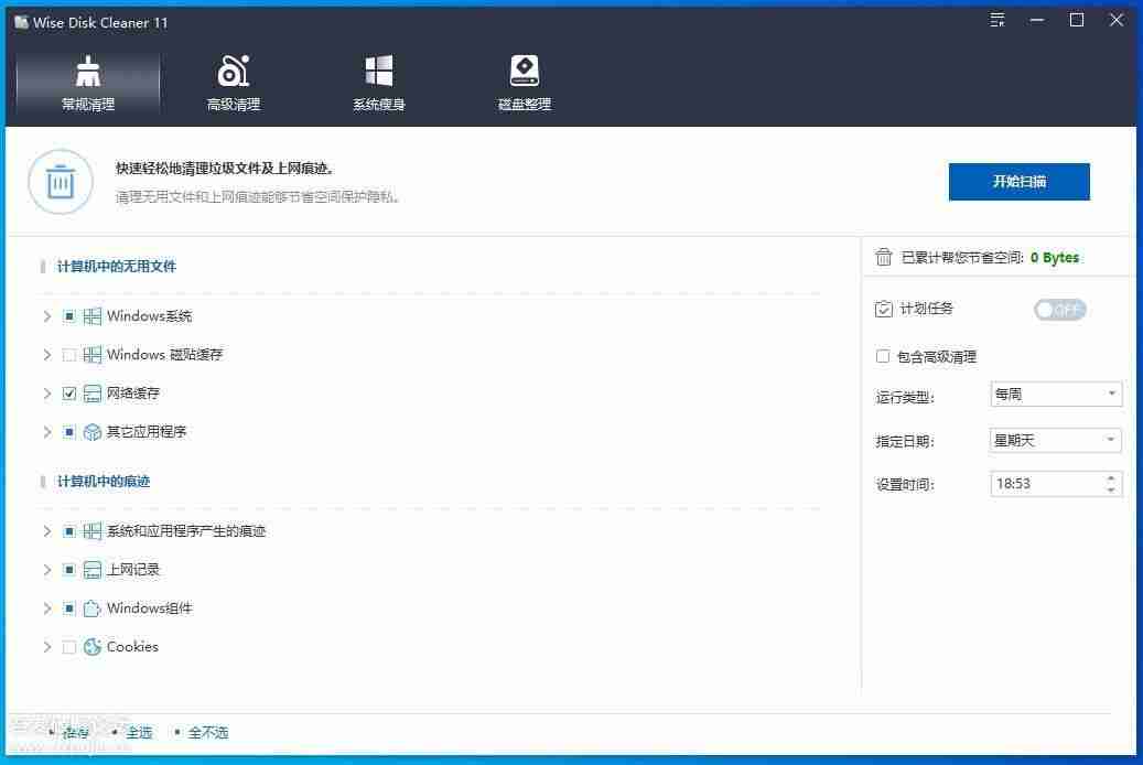 - 常规清理:能够快速、轻松地清理系统垃圾、上网痕迹以及应用程序产生的垃圾文件。例如,它可以清理浏览器的缓存文件、历史记录、临时文件等,还能清理系统运行过程中产生的各种临时文件、日志文件等,帮助释放磁盘空间,让系统运行更加流畅。