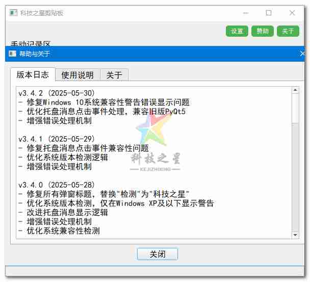 点击"快速粘贴剪贴板内容"按钮,可将当前剪贴板的文本内容(带时间戳和分隔线)插入手动记录区,方便整合信息。 - 灵活的窗口设置